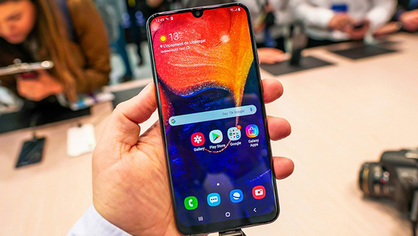 Samsung Galaxy A50 был анонсирован в феврале 2019 года и получил 6,4-дюймовый дисплей Super AMOLED с разрешением 2340 × 1080 точек и встроенным сканером отпечатков пальцев, а также восьмиядерный 10-нм процессор Exynos 9610. Одной из ключевых характеристик модели является тройная тыльная камера. Её основной фотомодуль построен на базе 25-Мп сенсора с объективом f/1,7 и фазовым автофокусом. Кроме него применяются 8-Мп матрица со сверхширокоформатной оптикой и 5-Мп датчик глубины. Фронтальная камера 25-мегапиксельная, с диафрагмой f/2,0.